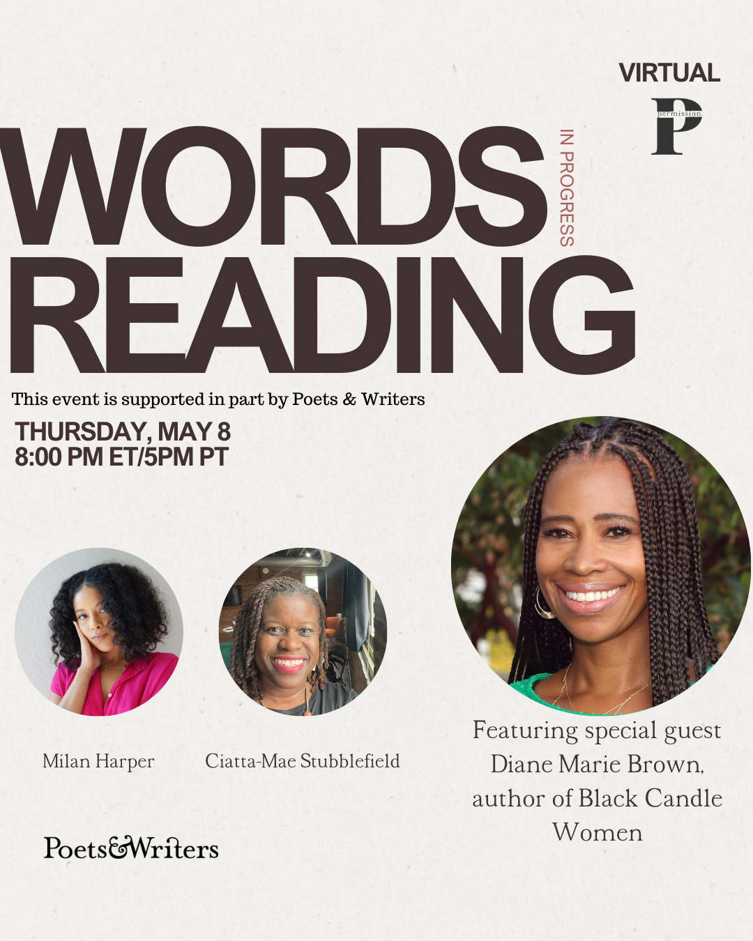 We’re thrilled to bring you this virtual event supported in part by Poets & Writers. See you there?